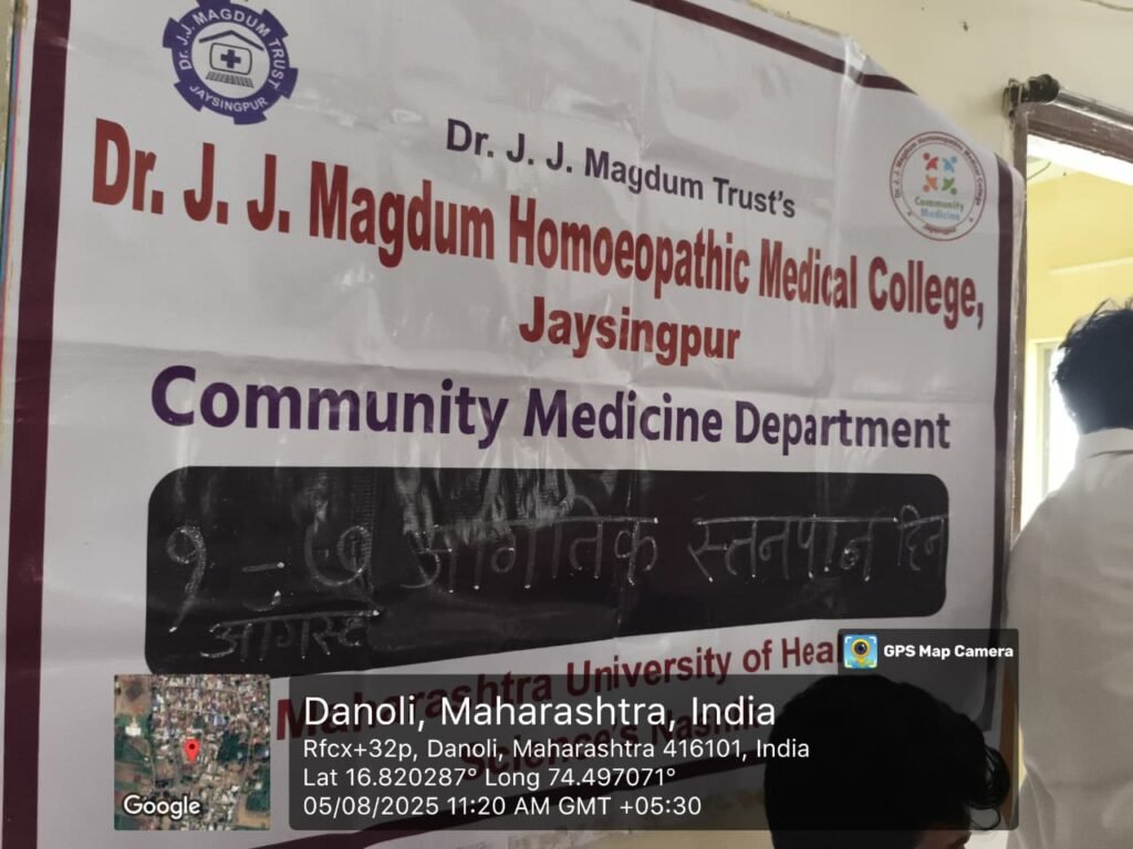 1 to 7 August 2025 – Breast Feeding Week Awareness Programme was conducted in Adopted Village : Danoli By Community Medicine Department. Post author:admin Post published:August 8, 2025 Post category:Newsletter You Might Also Like UG PG Fee Structure 2021-22 February 5, 2022 Global Surya Namaskar Day Celebrated at Dr. J.J.Magdum Hom. Medical College Hospital,Jaysingpur by Yoga and Naturopathy Department January 29, 2023 Dr. JJMHMC Jaysingpur Staff and Students Organize World Health Day Rally April 8, 2023