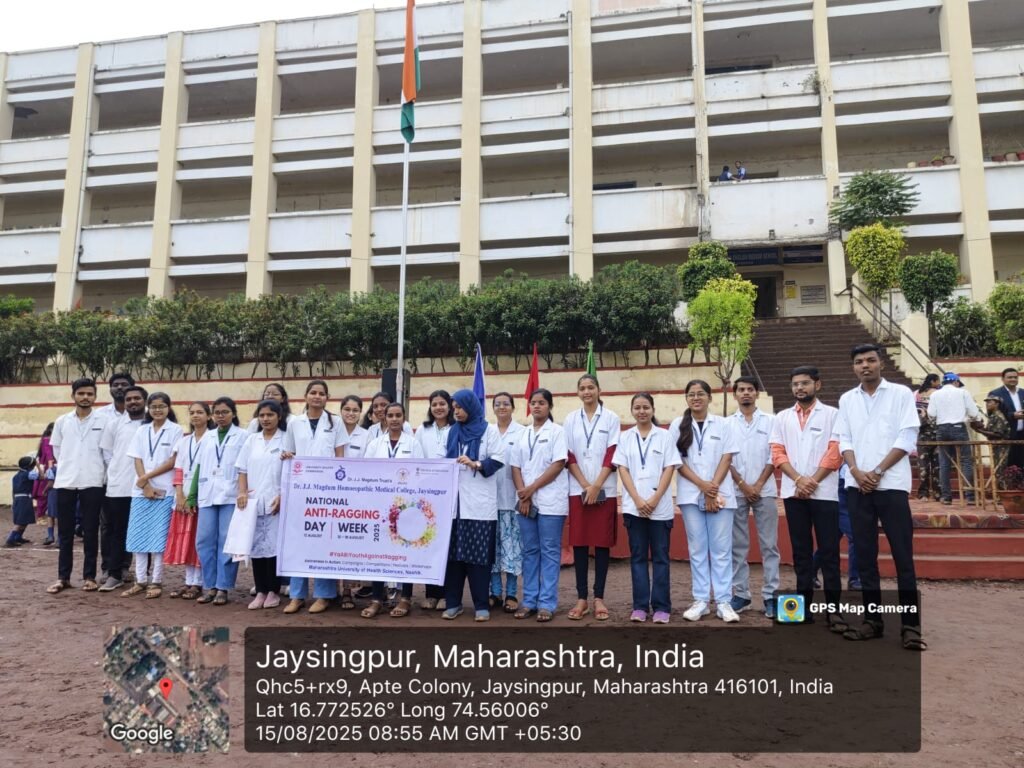 Anti-Ragging day and week we celebrated this week by various activities Post author:admin Post published:August 12, 2025 Post category:Anti Tagging Events / Events & Activities You Might Also Like Free Community Health Camp October 8, 2024 UG Foundation Day Programme was conducted by Dr. Aarti S. Kognole at Dr.J.J.Magdum Ayurved Medical College, Jaysingpur. November 27, 2025 Seminar on ‘Limitless scope of Homoeopathy March 10, 2023